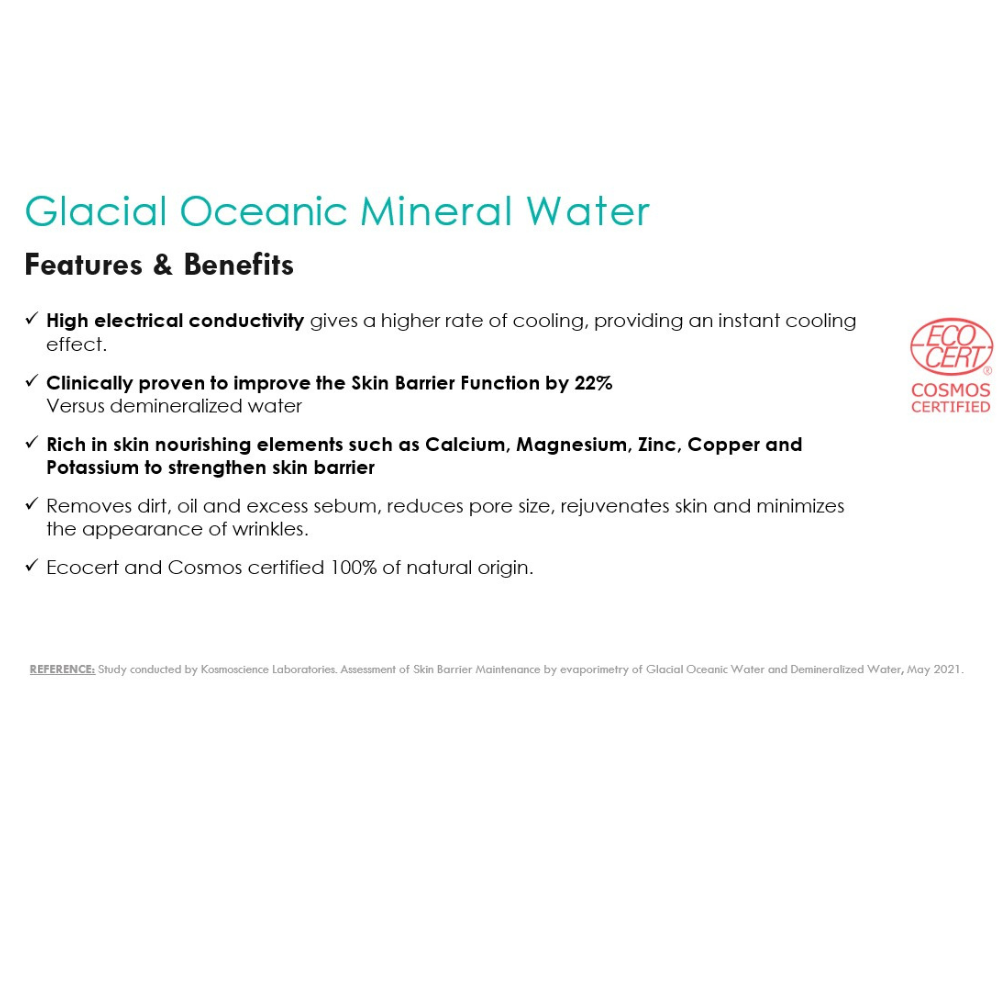 Glacial Oceanic Mineral Water (Sea Silt Extract/Extrait de limon marin):