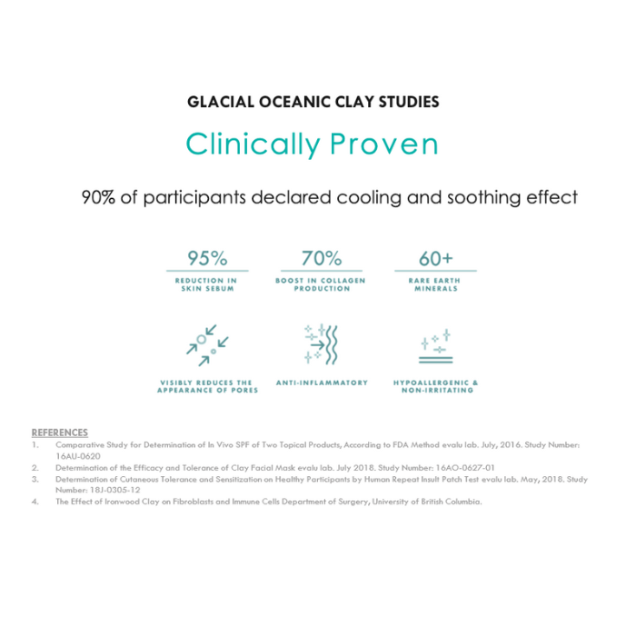 98% of users reported that their skin was brighter and more vibrant after using the Glacial Oceanic Clay masks for 2 weeks